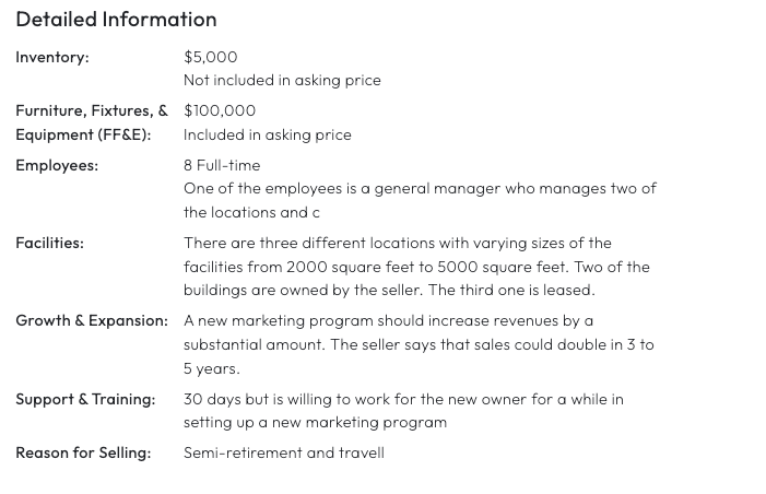 The real estate portfolio includes ownership of two facilities, providing significant operational control, while the third location operates under lease terms. The real estate is not included in the sale at this time but could be negotiated for a later date. Vehicle fleet assets include recent acquisitions demonstrating strong cash flow capabilities and reinvestment in operational infrastructure.